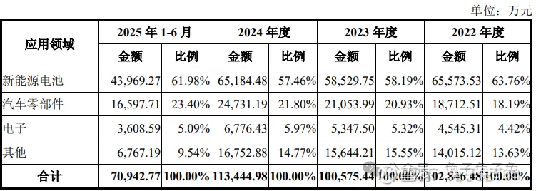 下游行业需求波动的风险:公司主要产品智能输送系统服务于制造业企业智能工厂建设,产品广泛应用于新能源、汽车零部件、电子、仓储物流等行业领域。报告期各期,公司应用于新能源电池领域的产品收入占主营业务收入的比例分别为 63.76%、58.19%、57.46%和 61.98%,占比较高。新能源电池行业产线新建及改造升级需求放缓可能导致新能源电池制造装备市场规模增速放 缓。如果公司未能持续提升在新能源电池制造装备领域的市场占有率,或未能及时拓展产品在其他行业领域的业务规模,可能存在收入增速放缓甚至下降的风险。