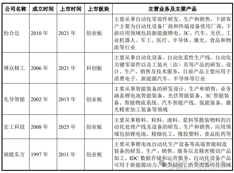 可比上市公司PETTM:怡合达(35.2)、博众精工(36.9)、先导智能(102)、宏工科技(107)、福能东方(59.3)。