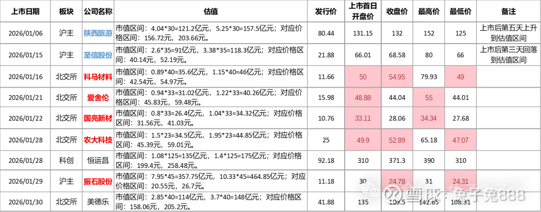 整体来看,1月新股延续了历年的惯例,比较中规中矩,亮眼的地方不多;大部分新股上市后股价一路南下,二级市场博弈性价比很低。