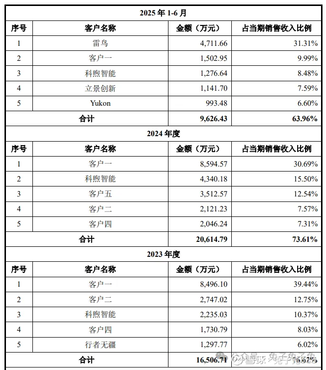 客户集中的风险: 2022 年度至 2025 年 1-6 月,公司向前五大客户的销售额占当期营业收入的比例分别为 75.59%、76.62%、73.61%及 63.96%,报告期内客户集中度较高, 且在未来随着公司实现向战略客户量产出货,客户集中度存在进一步提高的风险。 如果未来主要客户采购政策发生变化,或者主要客户自身经营发生重大不利变化、 发展战略或经营计划调整导致减少对公司的采购,而公司又无法及时化解相关风险,将对发行人经营业绩带来不利影响。