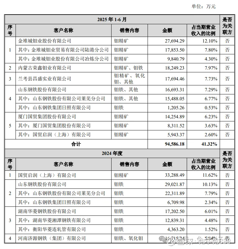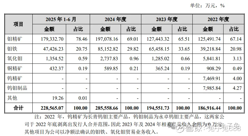 公司主营钼精矿和钼铁。