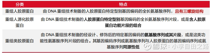重组人胶原蛋白是重组胶原蛋白最高的一级,同时要求”全长氨基酸序列“和”三螺旋结构“两大核心要素。