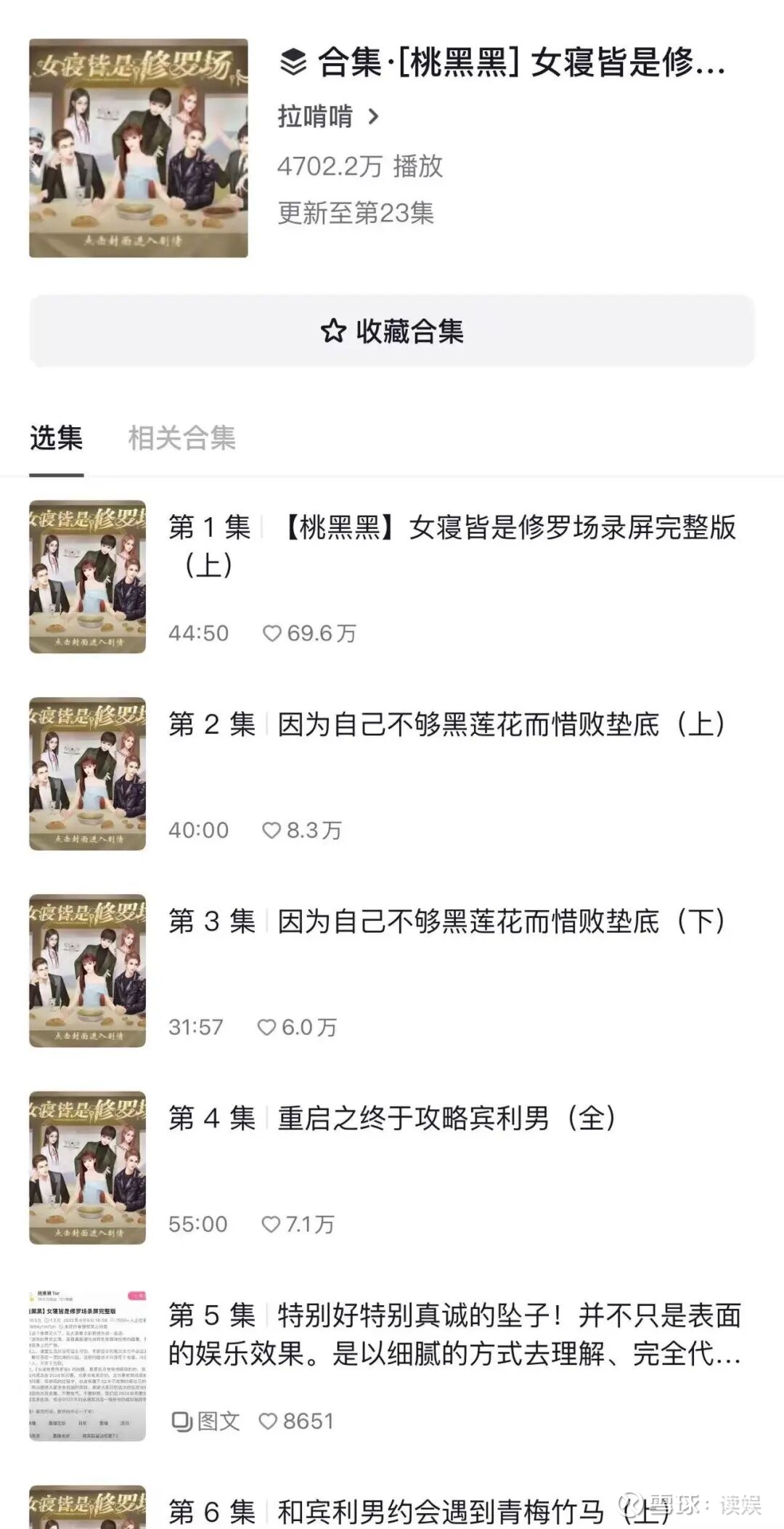 2021年,桃黑黑在抖音发布第一条视频,彼时他刚从上海理工大学毕业,账号内容以调侃生活、平视明星的小段子为主。转折发生在2022年——他在B站上传了《女寝皆是修罗场》的解说系列,这套总时长超12小时的内容,在当时并未激起太大水花,却在2024年被抖音算法重新挖掘,单条视频播放量突破518万,相关话题累计播放达7亿次。