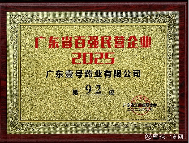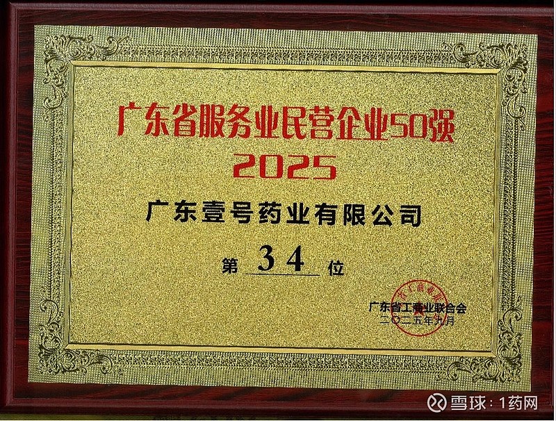 近日,广东省工商联发布“2025广东省民营企业100强”系列榜单,$1药网(YI)$ 1药网华南运营中心广东壹号药业有限公司(以下简称“广东壹号药业”)连续第三年入选“广东省民营企业100强”,并连续三年入选“广东省民营企业50强”。
