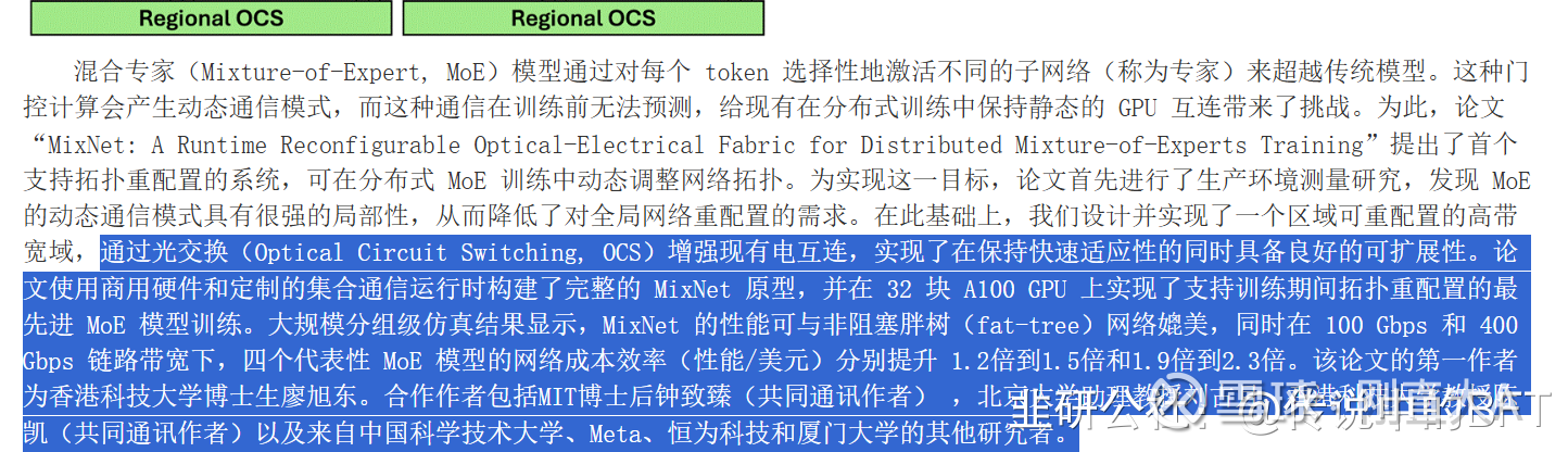 谷歌TPU配套OCS才能发挥出超强性能,Meta只采购谷歌的芯片,机柜依然使用自己的供应链来做集成,那么Meta会使用哪家的OCS呢?毋庸置疑,在OCS这方面,Meta有自己的架构,便是和麻省理工大学、北京大学、厦门大学、恒为科技联合推出的MixNet架构。