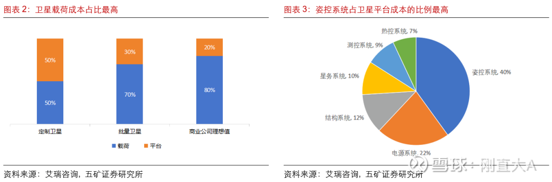 占低轨卫星成本比重最大的部件是相控阵天线系统的TR组件,其次是姿控系统中的霍尔推进器。
