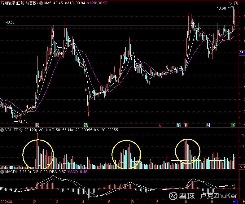 $万朗磁塑(SH603150)$ 三次顶放量是最不好的走势