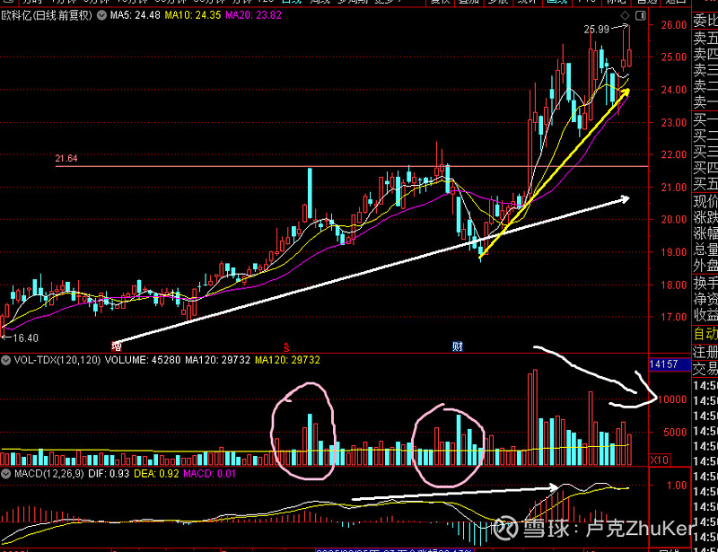 平台之上呈现价升量缩的技术形态,以及单日大阳线后缩量小K的整理,斜率方面从30度左右到45度左右,K线形态在斜率切换换也是相对应的放大,基本你都是机构洗盘的特征。