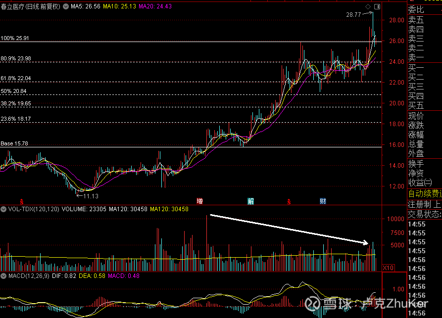 春立医疗,0.618支撑之上的二次建仓类型,突破平台后的回踩,稳中求进,以逸待劳,非常健康的走势。