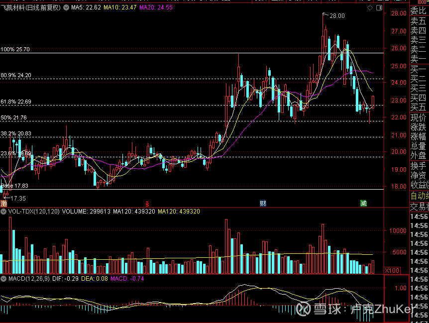飞凯材料,0.618位支撑之上的二次建仓类型,目前处于洗盘阶段,可左侧思路在支撑位附近布局底仓。