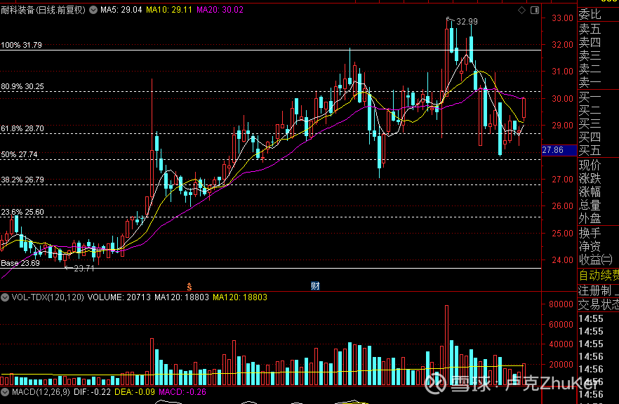 耐科装备,0.618位支撑之上的二次建仓类型,目前处于洗盘阶段,可左侧思路在支撑位附近布局底仓。