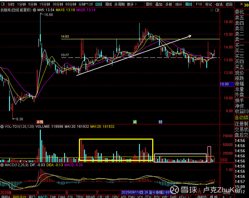 创新高后缩量的阴跌价格打到了前期盘旋拉升的平均价格13到13.5附近
