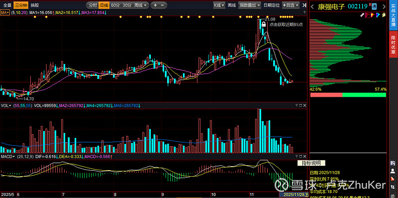 $康强电子(SZ002119)$ 大幅度洗盘下跌后筹码在低位再次顶格,连续四个交易日的收盘价格也没有再次跌破周一收盘价的低点,下周一再看一天,还是能维持不跌破周一的收盘价格,可以选择适当加一点仓位进去了,平摊成本均价,他之前的拉升幅度达不到机构出货能力,这样的快速下跌还是洗盘特征。