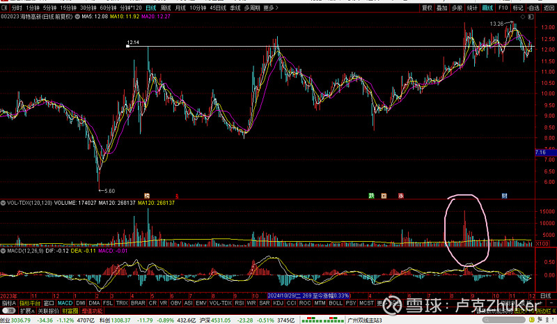 大周期平台的突破放巨大的量,说明有比较大的分歧,机构筹码相对不稳定