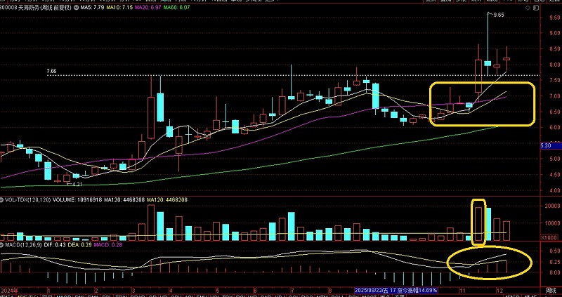 $天海防务(SZ300008)$ 周线级别平台的实体大阳线突破