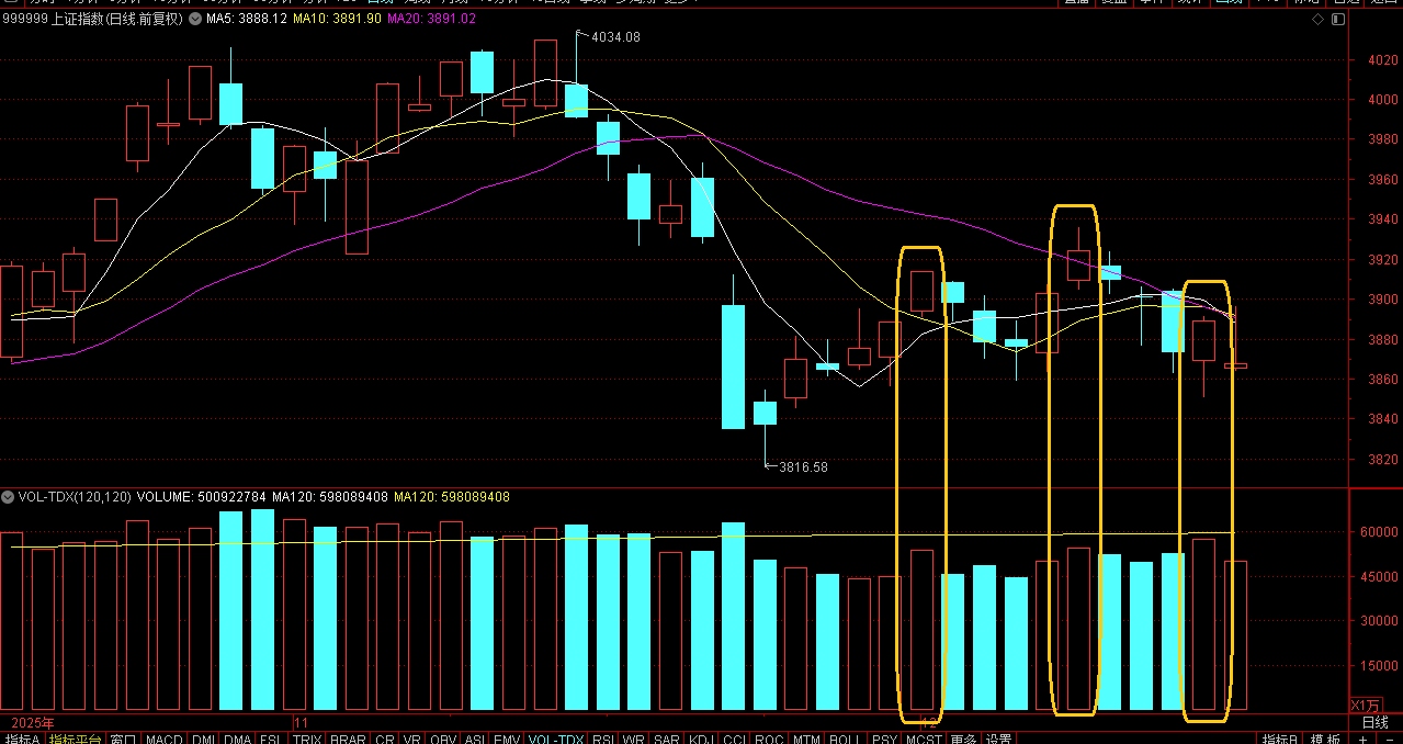 大盘指数的量能虽然一直处于120日均量线之下,但也会有放量和缩量的时候