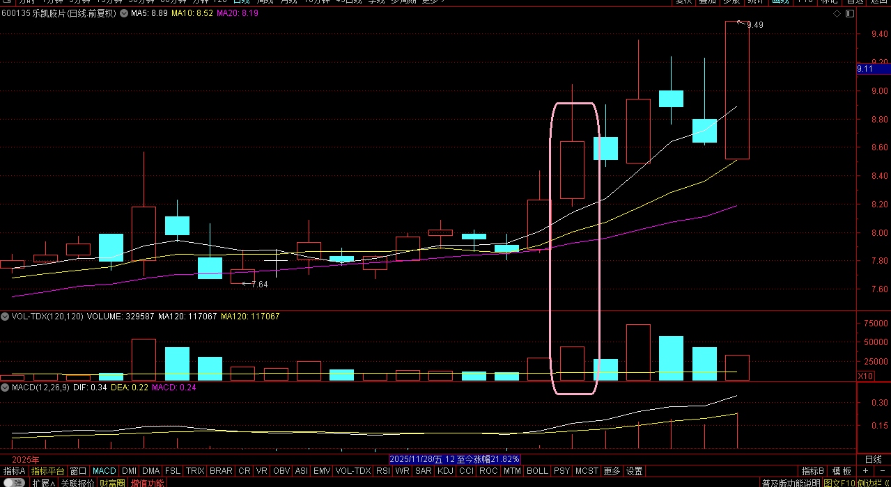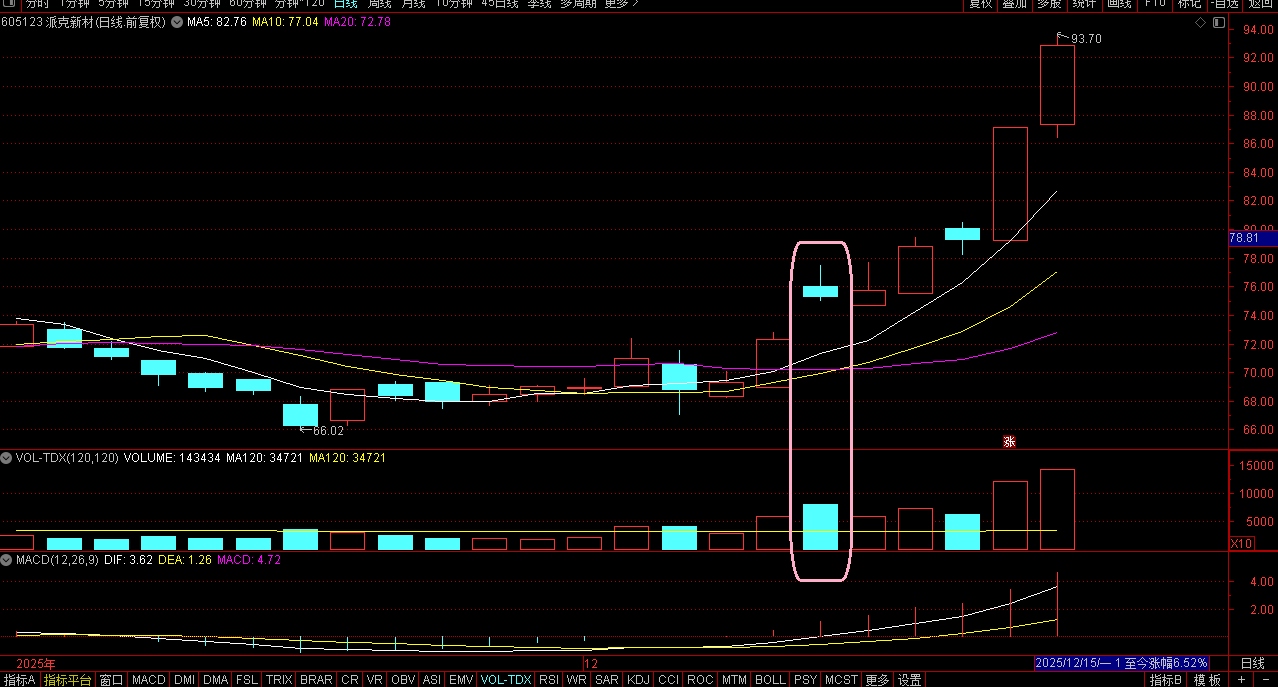 12月5日放量对于前期大平台的突破,伴随着MACD指标在0轴之上的同步新高