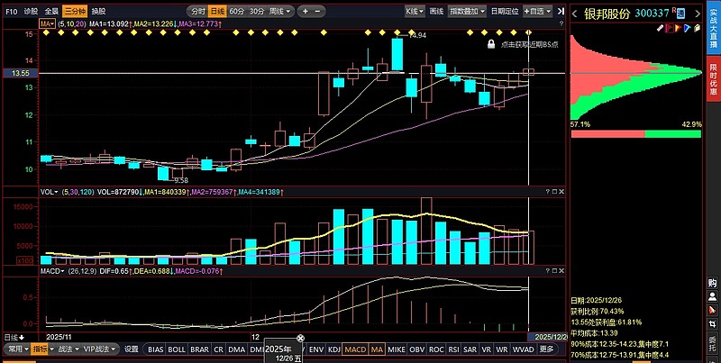 $银邦股份(SZ300337)$ 商业航天指数在大盘存量环境下走出了强者恒强的态势,撇开消息面的影响,是对技术走势的笃定,到今天收盘,还是没有任何问题的,底部的筹码依然坚若磐石,只要底部的筹码不松动,现价位筹码不出现加长顶格的迹象,短线思路继续看好。