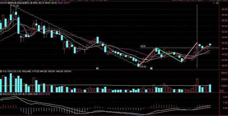 另外的一种走势就是需要持续的放量,也就能达到短线强势能力,也有创前期高点61附近的能力