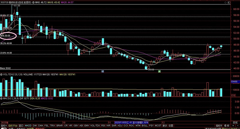 这里第一波的反弹空间位置是50附近,假如股价还有向上的脉冲,需要减仓降低仓位,因为目前还处于第二步的洗盘阶段,需要做高抛低吸