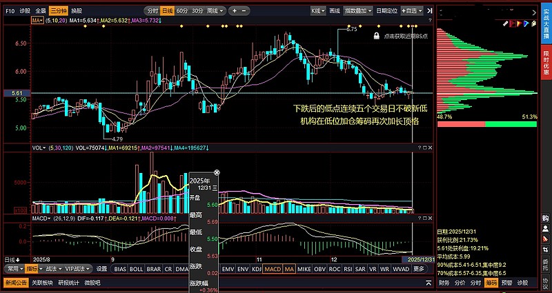 目前阶段还是左侧,股价还没回到20日线之上,且MACD指标也没上0轴,还有一点就是没达到上量的能力,金三角阶段最好能上量到120日均量线之上,才能达到右侧验证的能力