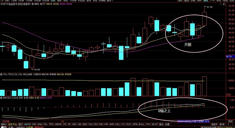 短期走势股价在前期放量建仓平台下沿止跌后已经重新回到了20日线之上,MACD指标在已重回0轴之上,今天5日线再次金叉10日线,开了天眼,即是中线,也是符合短线思路的