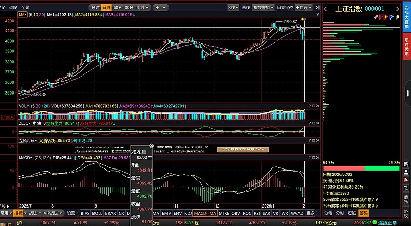 $上证指数(SH000001)$ 目前大盘指数的多空分水岭在4040点附近