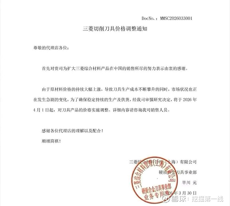 三菱硬质刀具也调价了。
