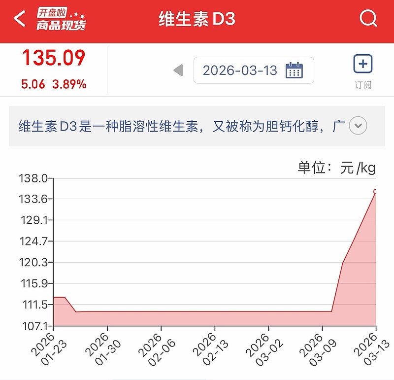 VD3价格今天又上涨了3.89%,连续上涨第四天