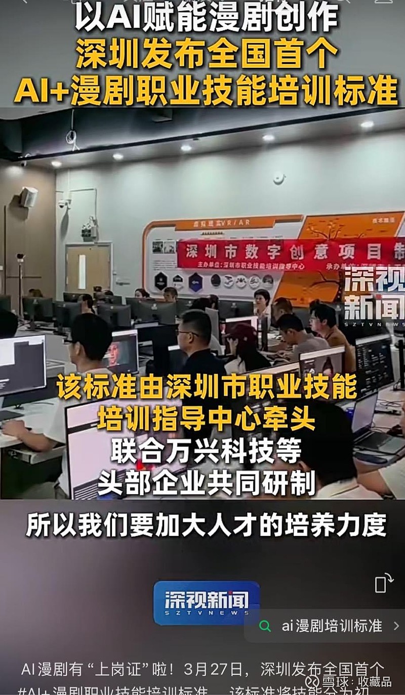 $万兴科技(SZ300624)$ $上证指数(SH000001)$ 3月27日,深圳正式发布全国首个AI+漫剧职业技能培训标准,该标准由深圳市职业技能培训指导中心牵头,联合万兴科技等头部企业共同研制,以AI赋能漫剧创作,聚焦漫剧领域人才培养,明确划分技能等级,为AI漫剧从业者提供专业“上岗证”,助力数字创意产业规范化、专业化发展。