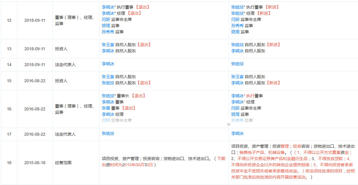 根据天眼查,中元融通投资的法人张立斌,2019年取代张皓琰成为公司股东,后续经过一系列资本运作持有其100%股份;张皓琰则在2018年9月接替张玉富入主中元融通投资,此前,张皓琰一度曾担任公司法人。