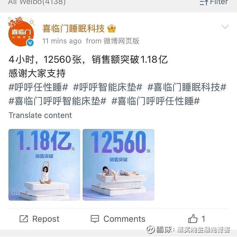 $喜临门(SH603008)$ 这一亿的去处大概率拿去刷销售额了,时间线上也对的上 3月20号新品发布会 4个小时1.18亿,实际销售额1千八百万 这一亿就是找人刷的销售额,最关键的一环来了 钱刷了,21号22号二天中间发生了什么导致钱没有回到账户,公司内部发生了分歧,23号开始大跌直到26号才报警!
