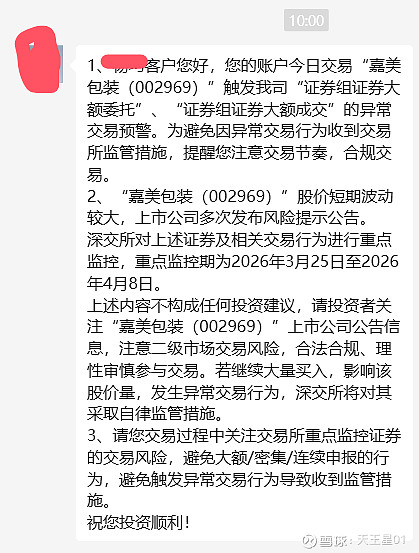 我才加仓400个马上又给我警示不让买了。等下周出监管了,你看看有没有大资金进来搞。