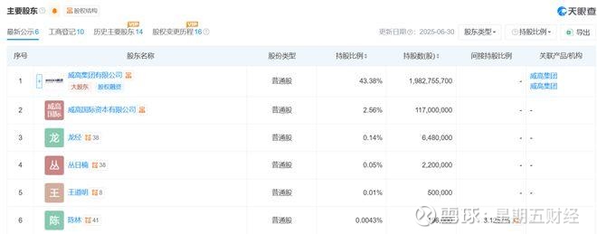 威高股份的控股股东是威高集团有限公司,后者持股43.38%。