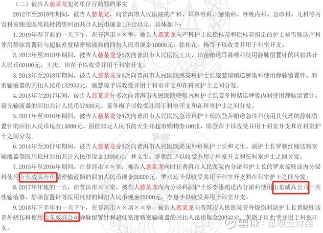 根据披露的内容,曾经的 山东威高集团医用高分子制品股份有限公司昆明销售分公司业务员慈某龙,为了推销医用耗材,将目标锁定在了医院的科室主任,尤其是各科室的护士长身上。