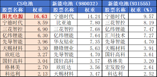 且对比前十大成分股来看,电池50ETF(159796)标的指数聚焦储能与动力电池两大黄金板块,其中第一权重股光伏逆变器龙头占比达16.63%,其余同类指数不含该成分股,此外还涵盖全球动力电池龙头、固态电池先行者等优势企业。