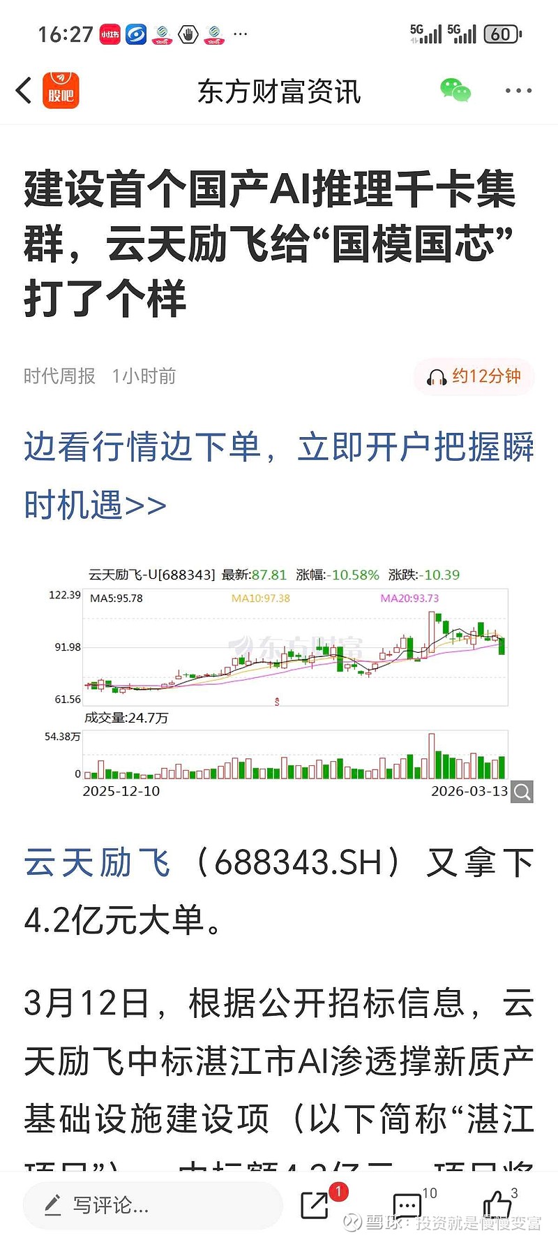 $云天励飞-U(SH688343)$ 大家都迷茫的时候要给大家打打气,一定要有信心。前途很美好,道路很曲折,AI时代还没结束,云天励飞的辉煌时代还没到来,未来还会新高,与企业一起成长过程中会有欢声笑语,也一定会有泪水和挫折,我们需要的是坚定信念,大涨后一定还会有大的调整,这就是现实,星光不问赶路人,岁月不负有心人!有技术实力建首个国产推理千卡集群的公司就云天励飞,并不是什么PPT公司。加油吧!少年!