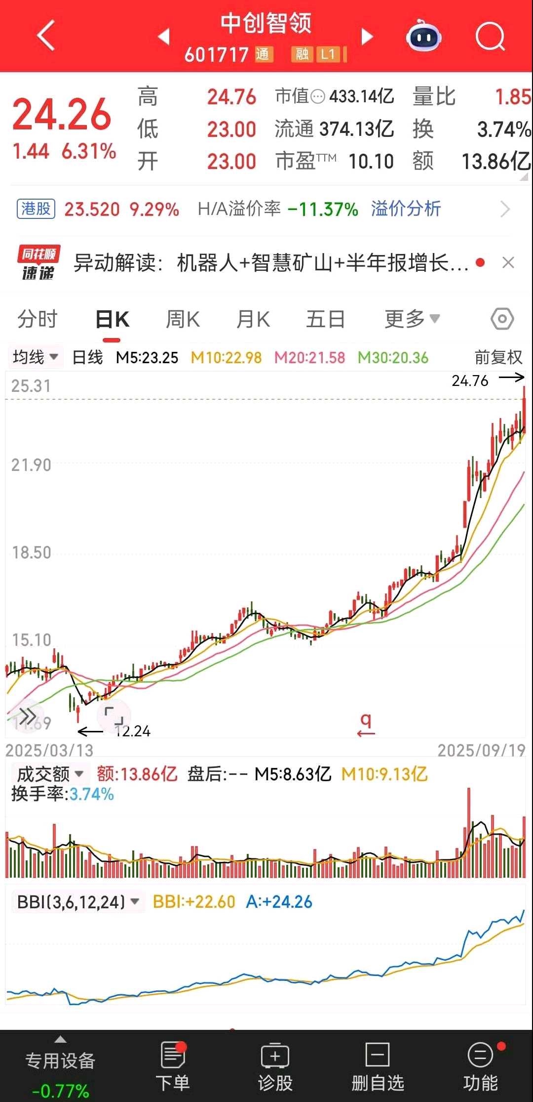 这一个,看@股市小民a 兄买的。我买的时候,还叫郑煤机,现在叫$中创智领(SH601717)$ 。