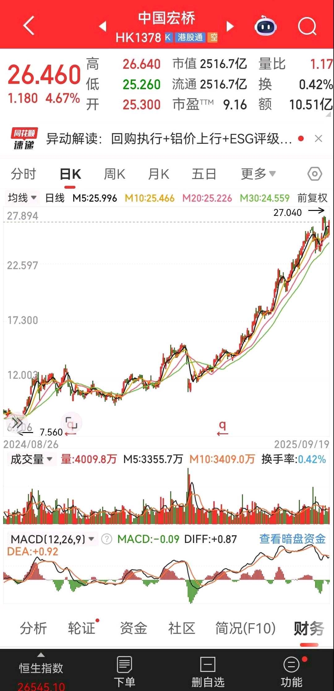 反思:买低估股时,一个心理障碍是,低估得不明显了怎么办?我在宏桥pe4倍,5倍6倍的时候,拿着很稳。但是到七倍开始,有点晃了。最终到八倍,我清仓了。