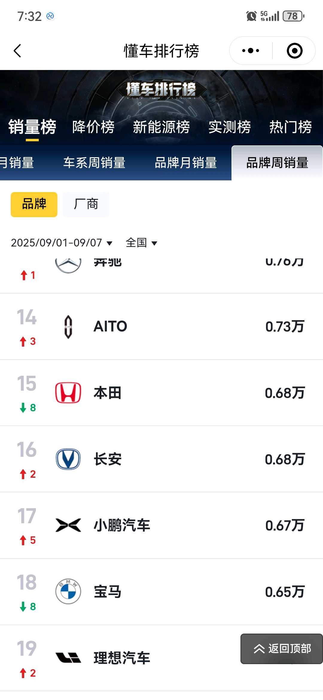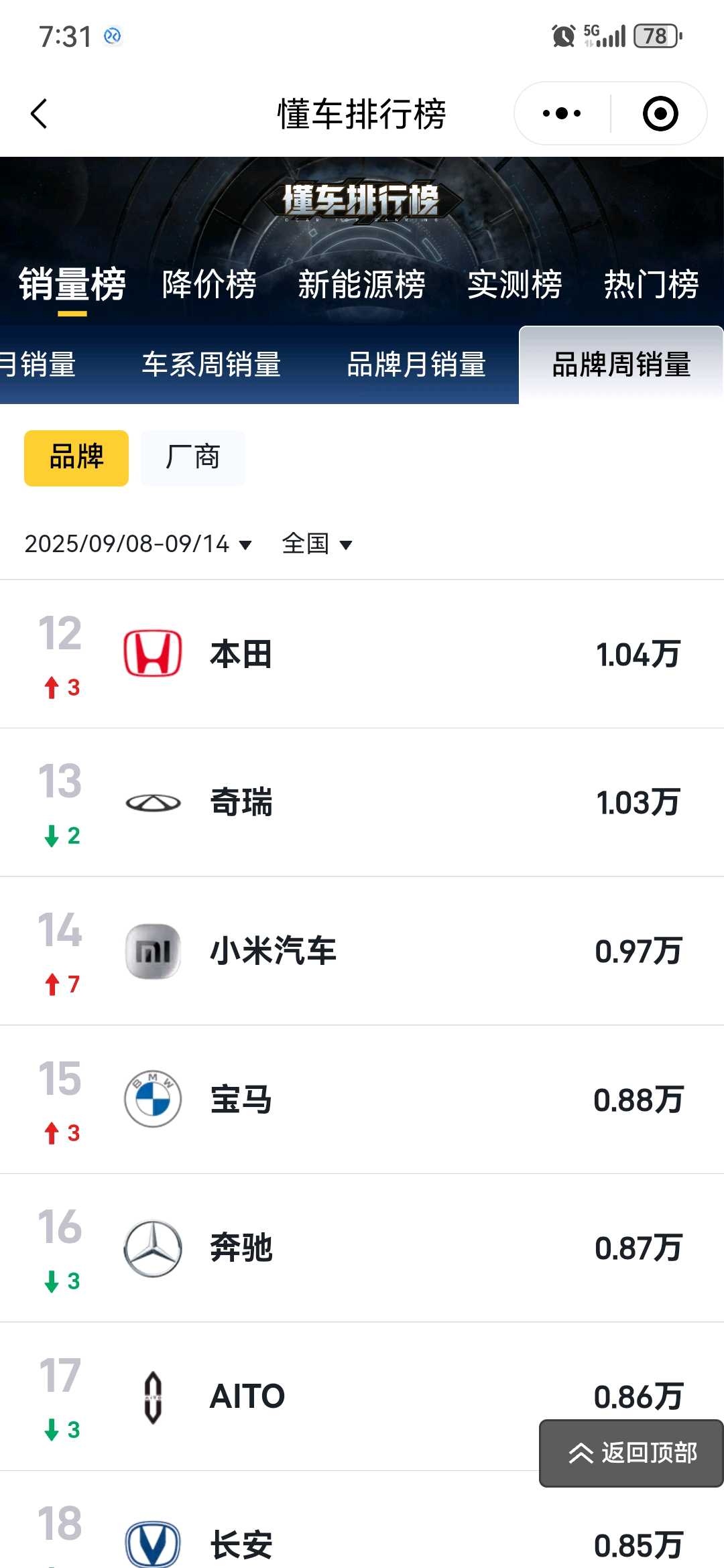 但也只有0.88万辆。至此,我对九月上4万,平均每周一万,已不太抱希望!