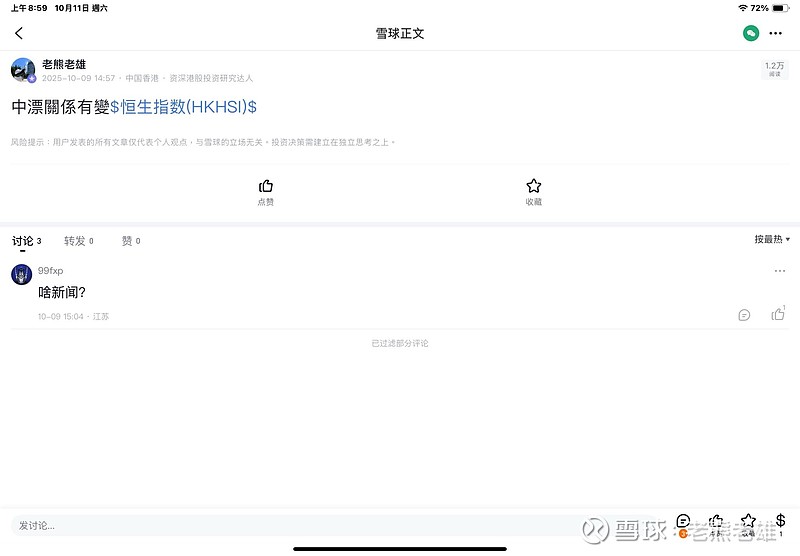 10月9日我看到中國商務部對稀土產品和技術的出口進一步收緊的新聞,當時就判斷中美關係有變,但是很快被平台屏蔽,我想這不是一個負責任的財經平台應該做的事,因為我講的是事實,你作為一個UG C平台,訊息來源也不一定比我更快更準確,你憑什麼隨便屏蔽我的發言?長此以往就算你發展得如何優秀也只能淪為一個二流的平台。我很喜歡在這裏流連,所以才提出一些改進的建議,另外,動不動就禁言,我想你們沒有這樣的權力,也是不恰當的,下次再動不動就禁言的話,我會10倍時間不在平台發言和發表文章以十倍奉還。 其實任何人都可以以這樣的方式應對⋯⋯。