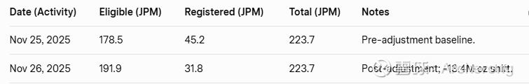 最具启发性的事件:摩根大通将1340万盎司白银从“注册”重新分类为“合格”白银。这些白银未提取,也未存入银行,而是被重新分类。这很重要,因为:“注册”白银是指可立即交付的库存;“合格”白银是指客户拥有的存储空间,不可提取。