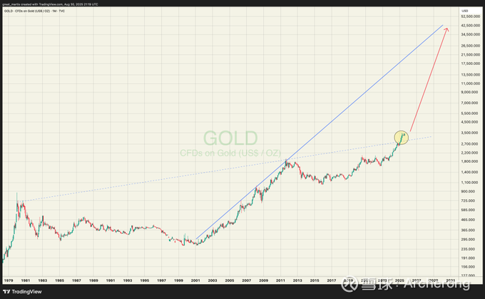 中美脱钩,两强相争,黄金价格正朝着5万美元迈进,这将开启史上规模最大的牛市,远超以往任何一轮。这轮牛市可能在股市崩盘后开始,并持续数年。但很少有人意识到这一点。
