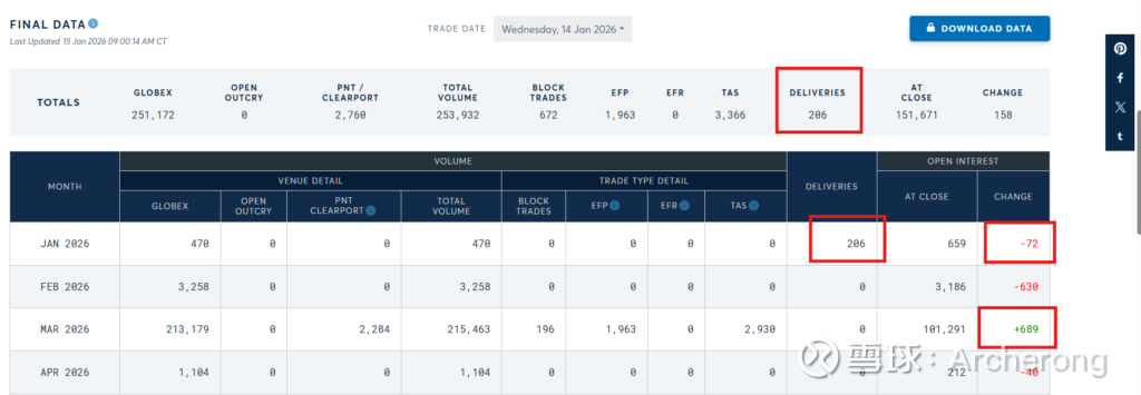 芝加哥商品交易所 (CME) 周四的未平仓合约数据显示,昨天的情况与12月29日完全相同,因为该组织回购了抛售到市场上的 3.2 亿盎司纸白银中的 99%,这些纸白银引发了白银抛售。
