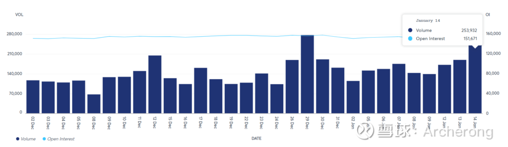 12 月 29 日,交易量暴涨至 277,392 手合约——比上年同期大幅增长 87,922 手合约,即 4.4 亿盎司——超过全球全年白银供应量的一半。