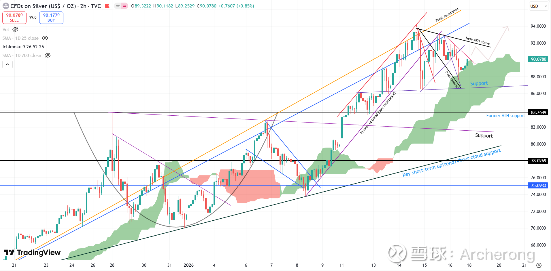 1月16日的SLV期权交割日,80美元争夺以空头失败告终,白银价格也回到90美元上方。
