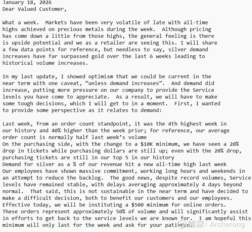 ——美国最大的白银交易商APMEX正在实行白银配给