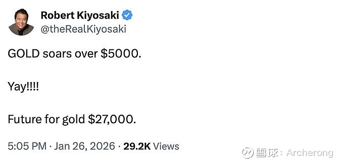 《富爸爸穷爸爸》作者罗伯特·清崎称,黄金价格将涨至27000美元。