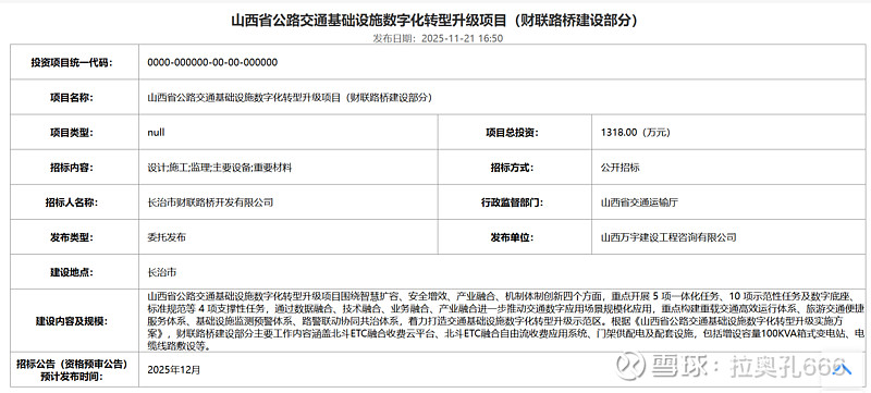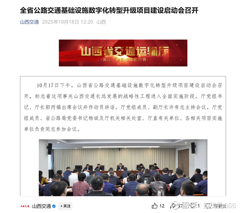 山西省公路交通基础设施数字化转型升级项目开始陆续启动实施,这只是其中一个省。