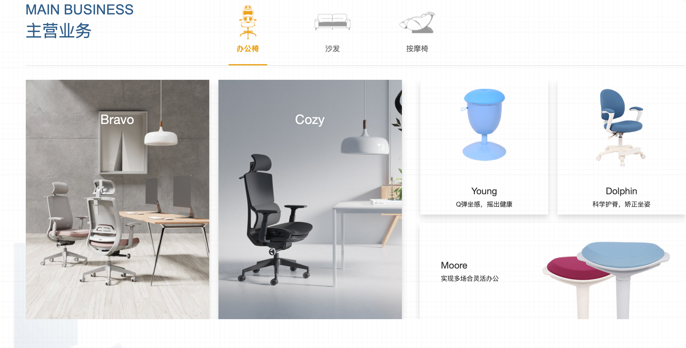 成为世界领先的健康家居品牌:研发、制造、销售办公、软体、板式家具及新材料地板及OEM/ODM/OBM业务。公司的主要产品是办公家具、软体家具、板式家具、新材料地板、综合家居及其他。